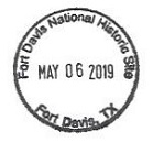 During late April and early May, 2019, we made a trip through portions of eastern Arizona, southern New Mexico and southwestern Texas. Along the way we visited some national parks sites, some other federal sites, and a few state and municipal sites. I have prepared this webpage illustrating the passport cancellation stamps and bonus stamps I collected. The stamps are listed by stamping station in the order I collected them. The national parks sites and other federal/national locations are shown in green.