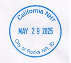 During middle May to early June, 2025, we made a trip through portions of Arizona, California, Colorado, Idaho, Nevada, Utah, and Wyoming. Along the way we visited some BLM, NPS, USFS, and USFWS sites, many state parks, and a municipal site. I have prepared this webpage illustrating the passport cancellation stamps and bonus stamps collected from these sites. The stamps are listed by stamping station in the order they were collected. The federal/national sites are shown in green.