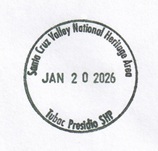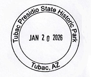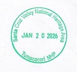 On January 20, 2026, we made a day trip through southern Arizona south of Tucson. Along the way we visited an NPS site, a state park, a county park, and several regional and community sites. I have prepared this webpage illustrating the passport cancellation stamps and bonus stamps I collected from these sites. The stamps are listed by stamping station in the order I collected them. The national parks sites are shown in green.