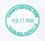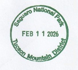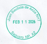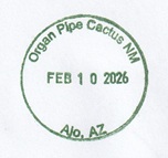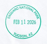 In early February, 2026, we made a trip through the desert regions of southwestern Arizona and southeastern California. Along the way we visited some NPS sites, several national wildlife refuges, some state parks, and several regional and community sites. I have prepared this webpage illustrating the passport cancellation stamps and bonus stamps I collected from these sites. The stamps are listed by stamping station in the order I collected them. The national parks sites and other federal/national locations are shown in green.
