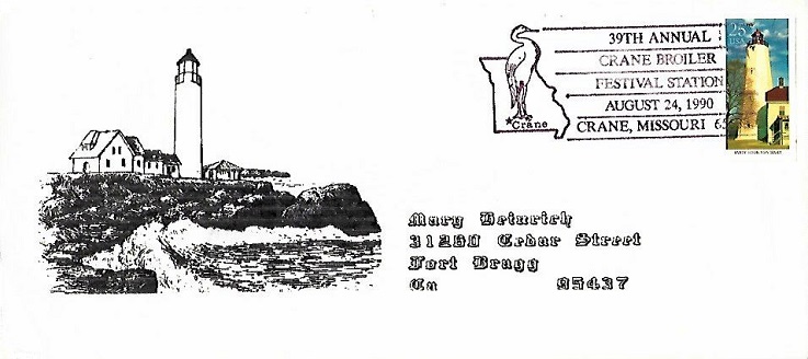 | Hand cancellation: "CHINOOK, WA 98614 MAR 5 1990". |