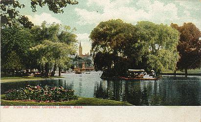 | "Scene in Public Gardens, Boston, Mass.". Color printed postcard, UB. Published by Souvenir Post Card Co., New York. Number 2887. Unused. Probably circa 1906. |