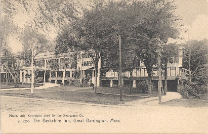 | "The Berkshire Inn, Great Barrington, Mass.". Black & white printed postcard, UB. Published by the Rotograph Co., N. Y. City. Number A5255. Unused. Copyright 1905. |