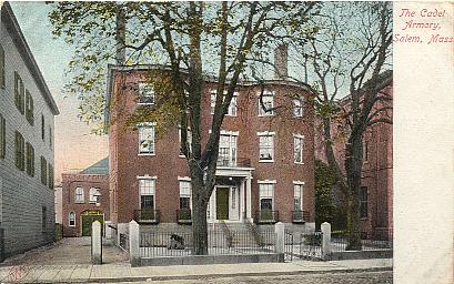 | "The Cadet Armory, Salem, Mass.". Color printed postcard, UB. Published by MNCo. Number 7796. Unused. Probably circa 1906. |