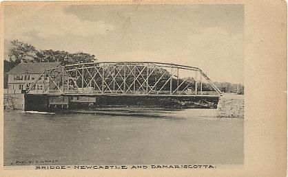 | "Bridge - Newcastle and Damariscotta". Black & white printed postcard, UB. Published by E. W. Nash. Printed by the Albertype Co., Brooklyn, N. Y. Unused. Probably circa 1906. |