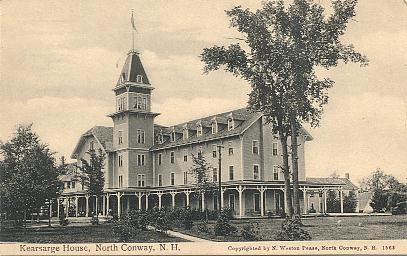| "Kearsarge House, North Conway, N. H.". Black & white printed postcard, UB. Published by N. Weston Pease, North Conway, N. H. Number 1568. Unused. Probably circa 1906. |