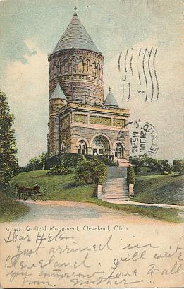 | "Garfield Monument, Cleveland, Ohio". Color printed postcard, UB. Publisher not given. Unused. Probably circa 1906. |