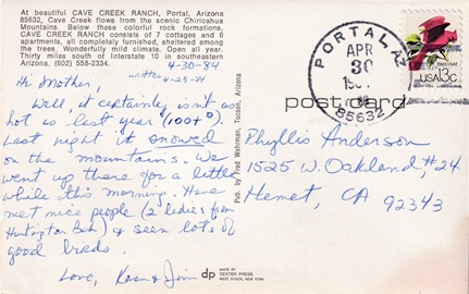 Hand cancellation: "SAINT DAVID, AZ 85630 APR 21 1983".