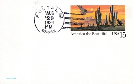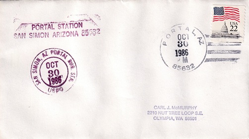 Special hand pictorial cancellation: "BUTTERFIELD STATION, BENSON, ARIZONA 85602 OCT 11 1986".
