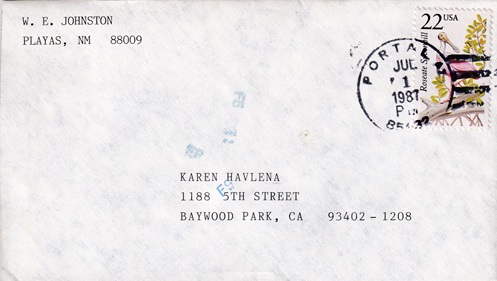 Hand cancellation: "BOWIE, AZ NOV 30 1987".