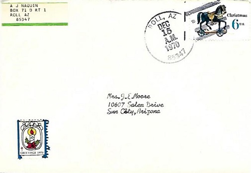 ![]() | Hand cancellation: "ROLL, AZ 85347 DEC 15 1970". |