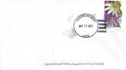 | Hand cancellation: "FLAGSTAFF, AZ 86004 USPS MAR 25 2013". |