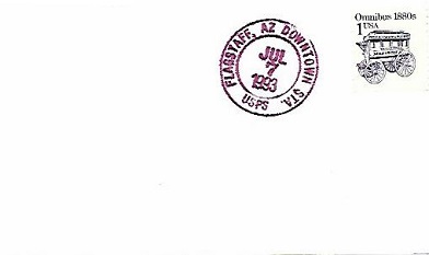 | Hand cancellation: "DOWNTOWN STA., FLAGSTAFF, AZ USPS JUL 7 1993". |