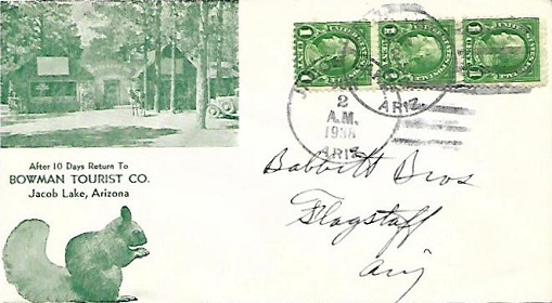 | Machine cancellation: "FLAGSTAFF, ARIZ. AUG 1 1955". |