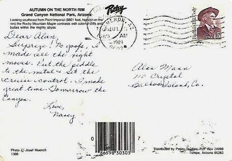 | Hand cancellation: "GRAND CANYON, AZ 86023 USPS FEB 26 1990". |