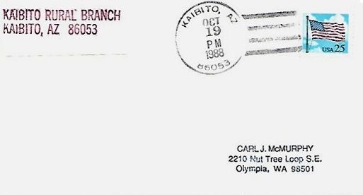 | Machine cancellation: "PAGE, AZ 86040 DEC 6 1988". |