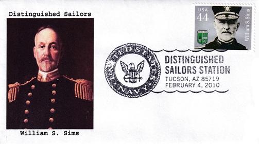 | These six cacheted covers salute distinguished sailors. Special hand pictorial & slogan cancellations: "DISTINGUISHED SAILORS STATION, TUCSON, AZ 85719 FEBRUARY 4, 2010 | UNITED STATES NAVY |". [TPS] |
