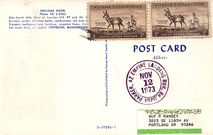 ![]() | Hand cancellation: "EMPIRE LANDING RUR. BR., PARKER, AZ USPO NOV 12 1973". |