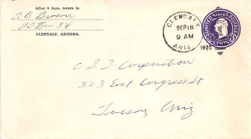 | Hand cancellation: "ESTRELLA, ARIZ. SEP 23 1936". |