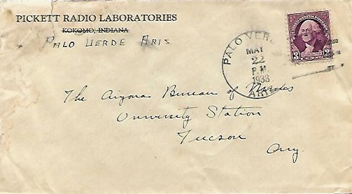 | Hand cancellation on front & back: "CACTUS, ARIZ. JUL 1 1930". |