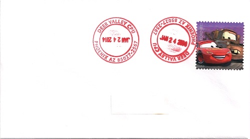 ![]() | Hand cancellation: "DEER VALLEY CPU, PHOENIX, AZ 85027-2567 JAN 24 2014". |