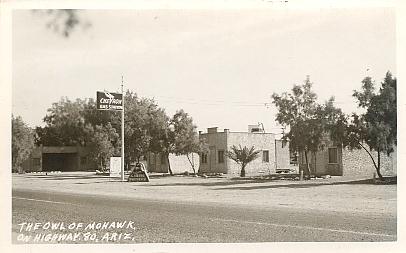 | "The Owl of Mohawk. On Highway 80, Ariz.". Real photo postcard. Publisher not given. Unused. Circa early 1940s. |