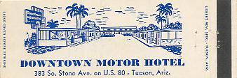 "Downtown Motor Hotel. 383 So. Stone Ave. on U.S. 80, Tucson, Ariz.".