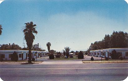 | "Autopia Tourist Court and Motor Park. 3901 East Van Buren St., Phoenix, Arizona. On Highways 60, 80, 89, 180". Color printed postcard. Publisher not given. Postmarked 1937. |