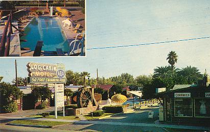 | "Log Cabin Court. 2515 East Van Buren Street, Phoenix, Arizona". Real photo postcard. Published by Robert Markow Photography, Phoenix, Ariz. Unused. Circa 1940s. |