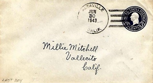 | Hand cancellation: "JAMESTOWN, CALIF. JUL 7 1941". |