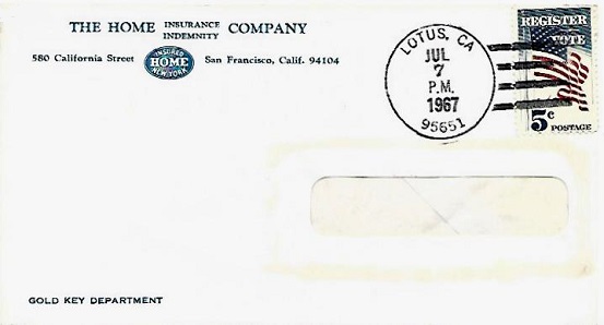 | Hand cancellation: "GOODYEARS BAR, CALIF. JUN 6 1957". |
