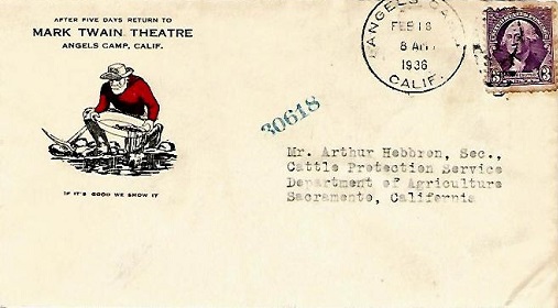 | Hand cancellations on front & back: "COLUMBIA, CALIF. MAR 2 1956". |