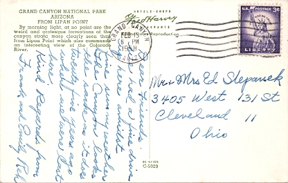 Machine cancellation: "GRAND CANYON, ARIZ. NOV 16 1936".