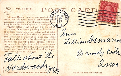 Machine cancellation: "GRAND CANYON, ARIZ. JUN 18 1927".