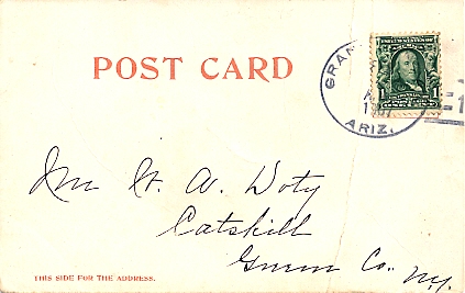 Doane hand cancellation: "GRAND CANYON, ARIZ. AUG 17 1906 | 11 |". [TPC]