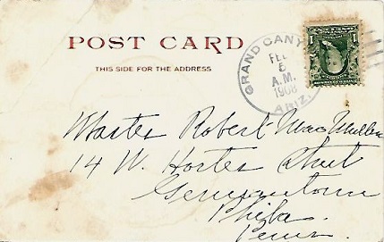 Hand cancellation: "GRAND CANYON, ARIZ. DEC 1 1905". [TPC]