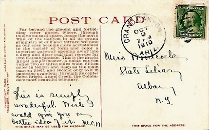 Hand cancellation: "GRAND CANYON, ARIZ. AUG 11 1912".