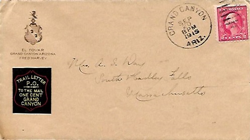 Hand cancellation: "GRAND CANYON, ARIZ. SEP 20 1915".