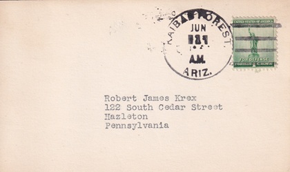 Hand cancellation: "KAIBAB FOREST, ARIZ. JUN 8 1942".