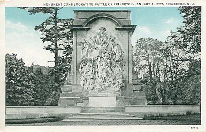 | "Monument Commemorating Battle of Princeton, January 3, 1717, Princeton, N. J.". Color printed postcard. Published by Curt Teich & Co., Chicago, Ill. Number 89742. Unused. Probably circa 1922. |