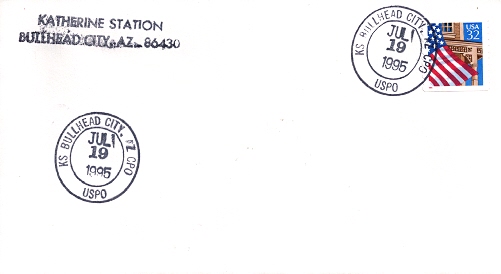 | Hand cancellation on cut piece: "ZION NATIONAL PARK RUR. STA., SPRINGDALE, UTAH JUL 27 1965". |