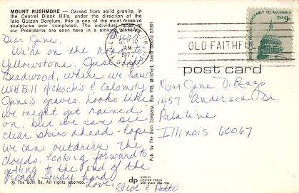 | Machine cancellation: "YELLOWSTONE PK, WY 82190 SEP 7 1976". |
