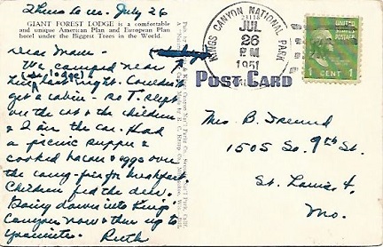 | Hand cancellation: "BIG BEND NATIONAL PARK, TEX. MAY 26 1954". |