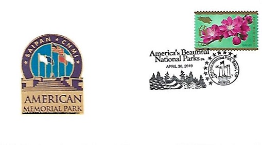 | Special hand pictorial cancellation: "America's Beautiful National Parks STA., American Memorial Park, Saipan, MP 96950 APRIL 30, 2019". |
