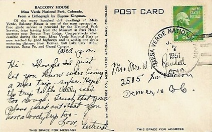 | Hand cancellation: "ZION NATIONAL PARK RUR. STA., SPRINGDALE, UTAH JUL 6 1960". |