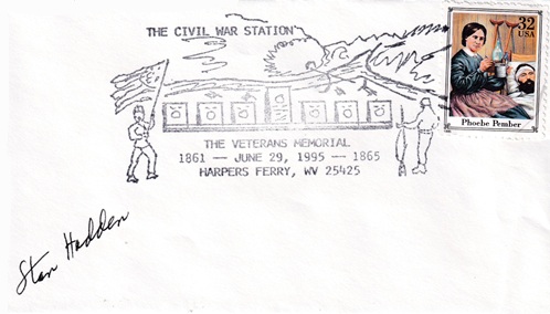 | Special hand pictorial & slogan cancellation: "Appomattox Campaign Station, APPOMATTOX, VA 24522 APRIL 9, 1995 | Petersburg to Appomattox Courthouse March 29, 1865 - April 9, 1965 130th Anniversary |". |