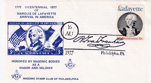 | Two special hand cancellations: "BENJAMIN FRANKLIN MEMORIAL STA., PHILADELPHIA, PA. MAY 19 1938". |