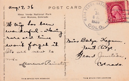 | Hand cancellation: "YELLOWSTONE PARK, WYO. AUG 21 1920". |