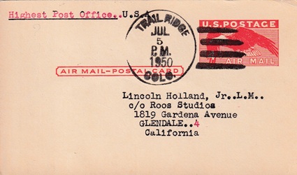 | Hand cancellation: "ZION NATIONAL PARK, UTAH JUL 7 1947". |