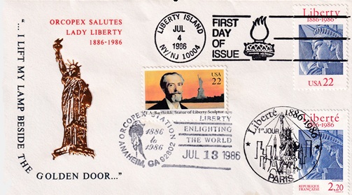 | Special hand pictorial & slogan cancellation: "ARKANSAS POST STATION, GILLETT, AR 72055 Oct 1 1986 | 300th ANNIVERSARY 1686 - 1986 Poste de Arkansea - Arkansas Post |". |